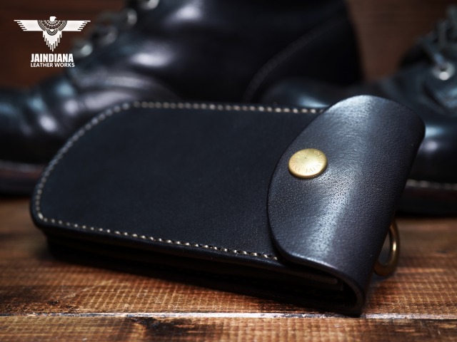 説得力ある重厚感を放つブラックサドルレザー。