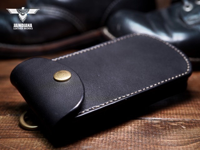 スマートフォン収納に特化した、重厚感あるサドルレザースマートフォンケース。