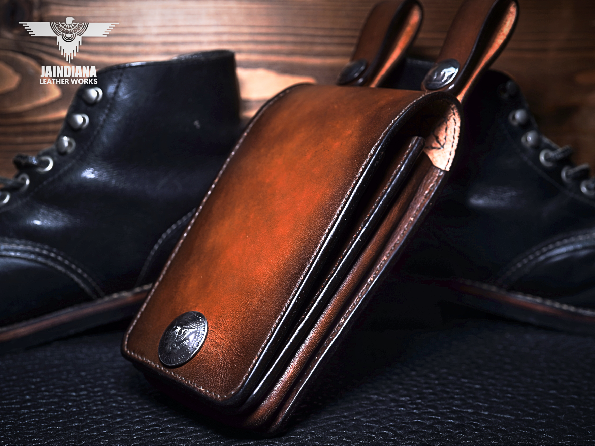 フロントフェイスにはアメリカ50セントコイン・イーグルコンチョを使用。