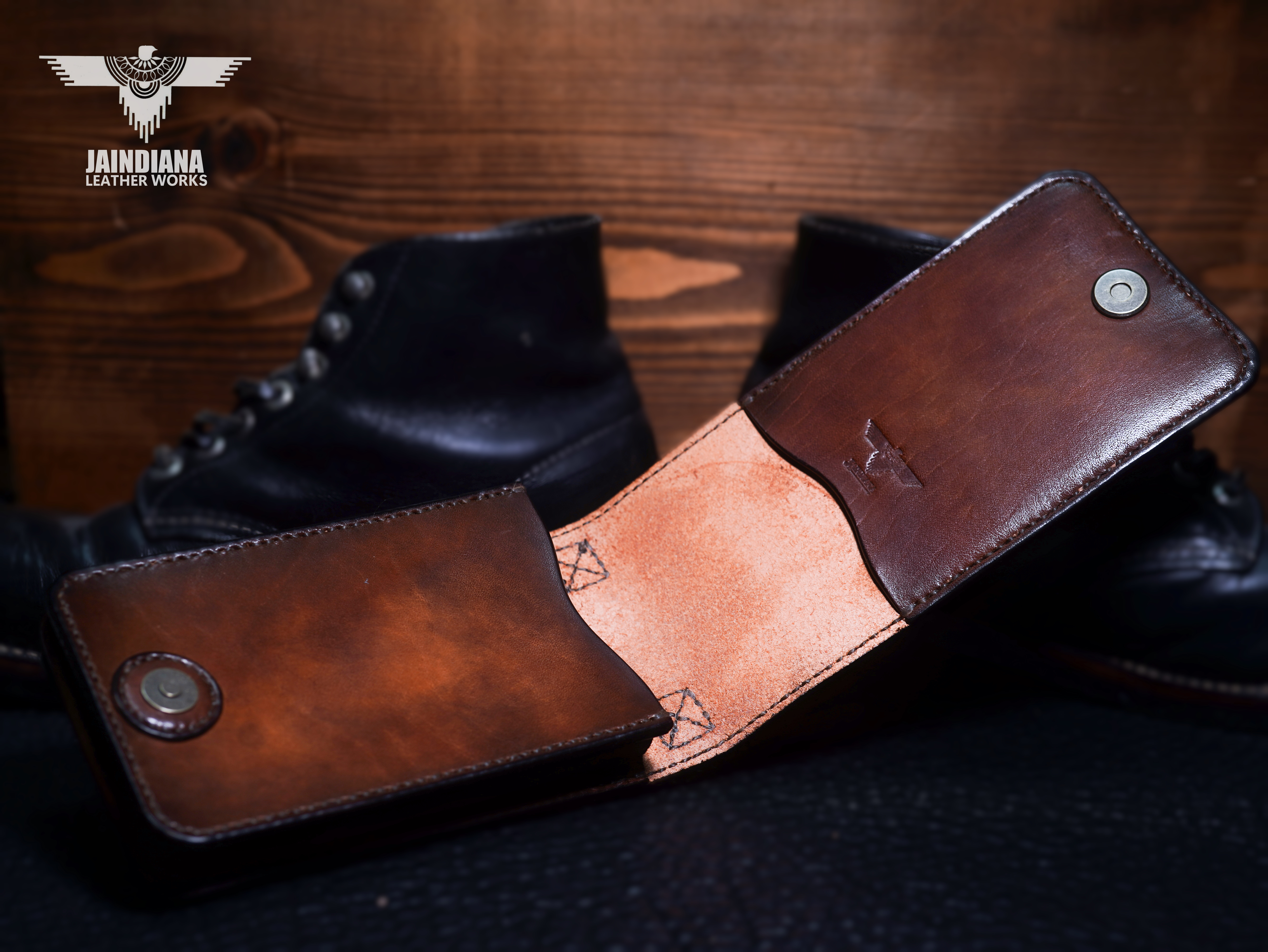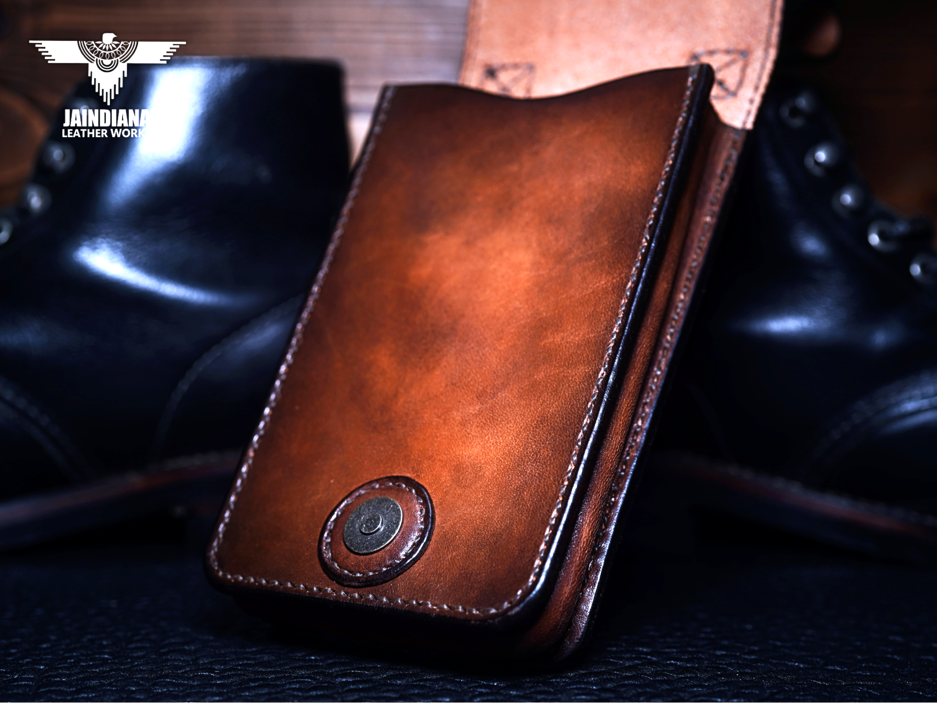 3.5ミリ厚のしっかりとした腰のあるサドルレザーは、大切なスマートフォンを外部衝撃から守り、革に付いた傷は味になり年期という魅力を増してゆく。
