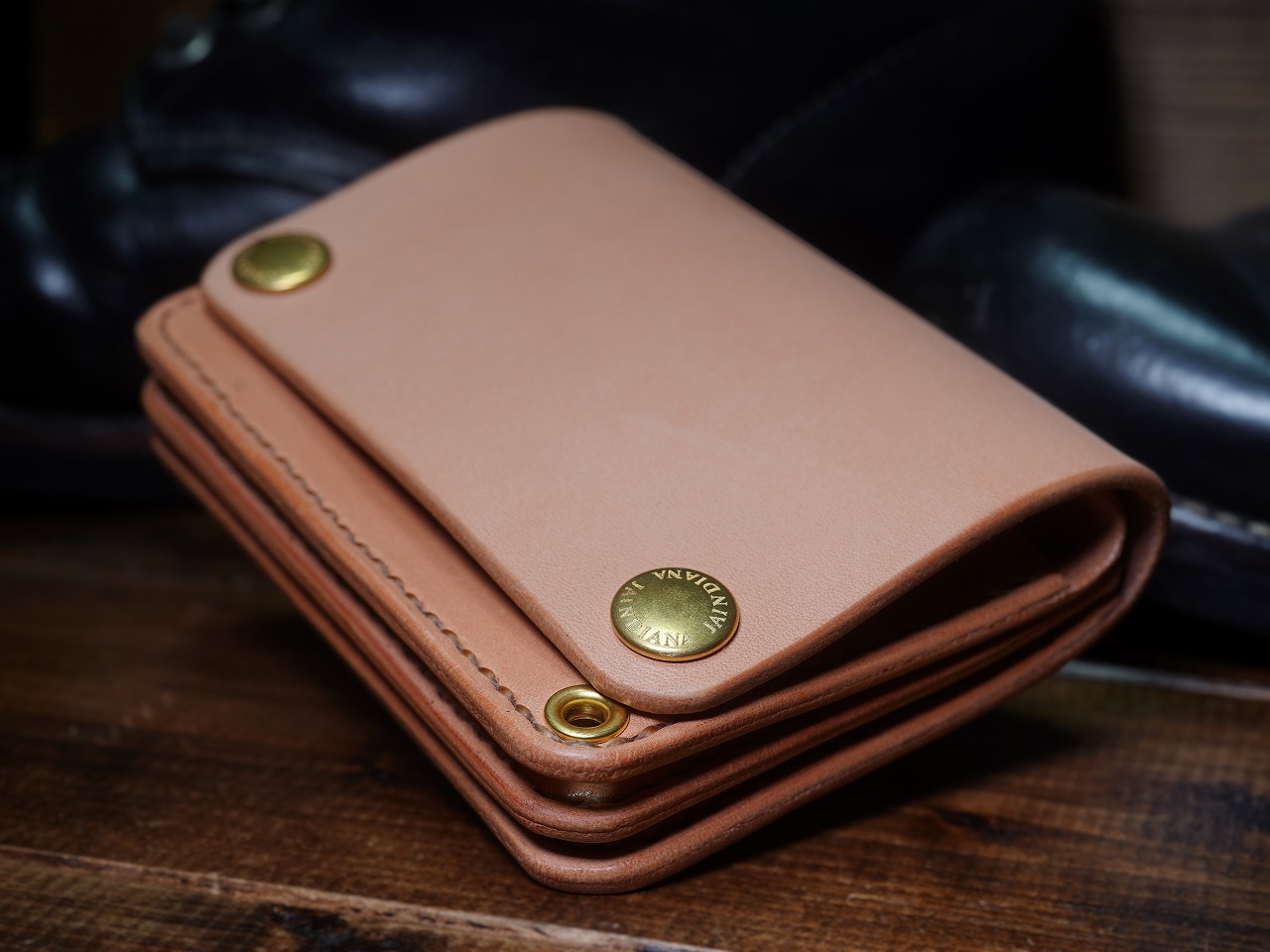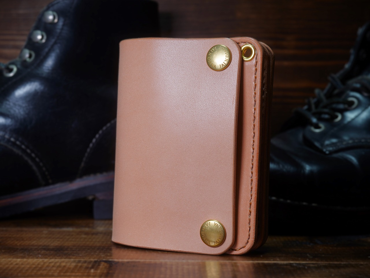 天然素材のナチュラルサドルレザーをシンプルで無駄の無いウォレットフォルムに落とし込んだトラッカーウォレット。コンパクトなショートサイズに本物の革の重厚感を感じさせる手縫いのトラッカーウォレット。