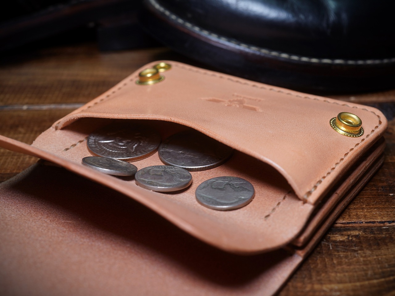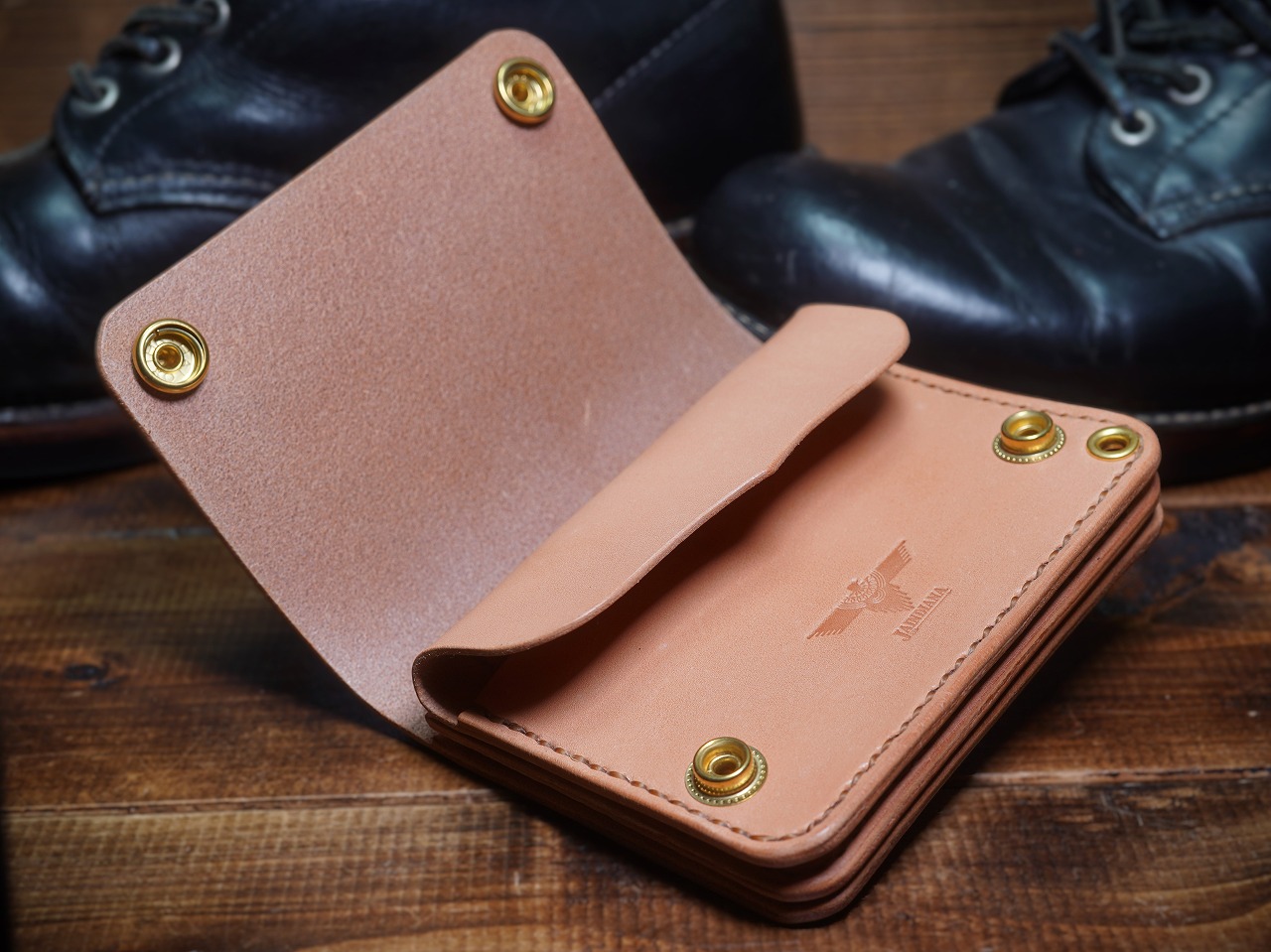 真鍮無垢製製ですので重厚感があり、サドルレザーウォレットとの相性が抜群です。