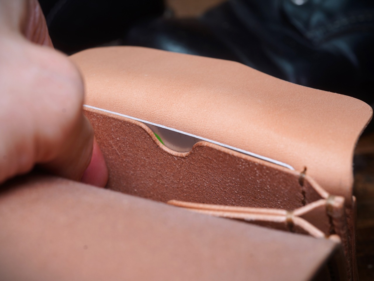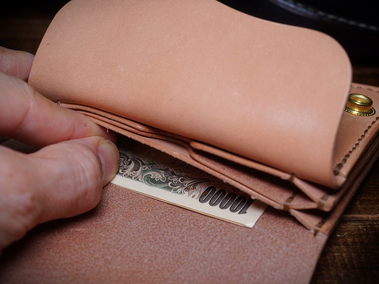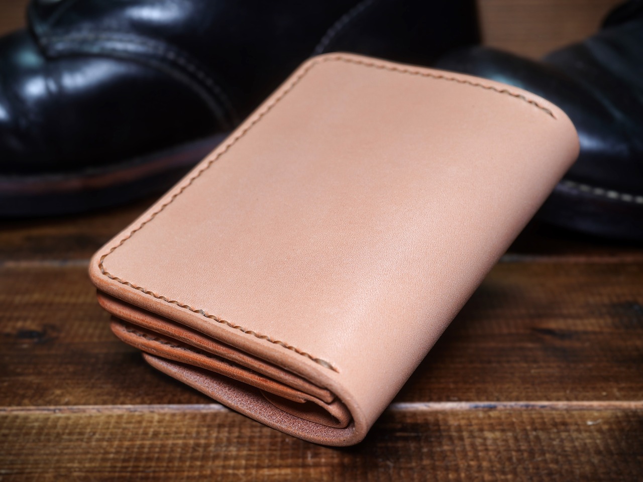 革と手縫いの相性は抜群で、財布として構成された革を骨のように屈強にささえ、血液のように脈々とウォレットラインを流れます。