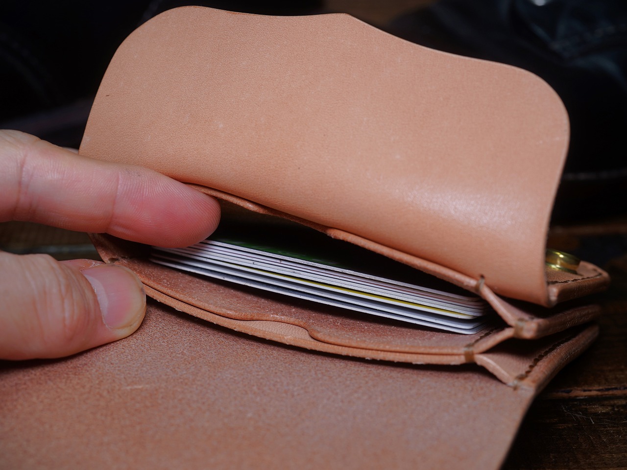 | 備考 | こば処理は丁寧にやすりがけを施し、コート剤で仕上げています。 糸は丈夫なシニュー糸を使用し、完全手縫いで製作しています。 手縫いはミシン縫いよりもはるかに丈夫で切れにくく、切れてもほつれにくい ため長く使っていただけます。修理も可能です。 |