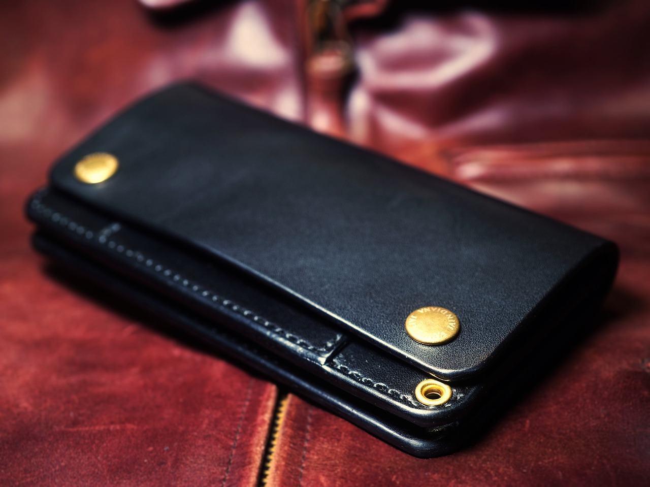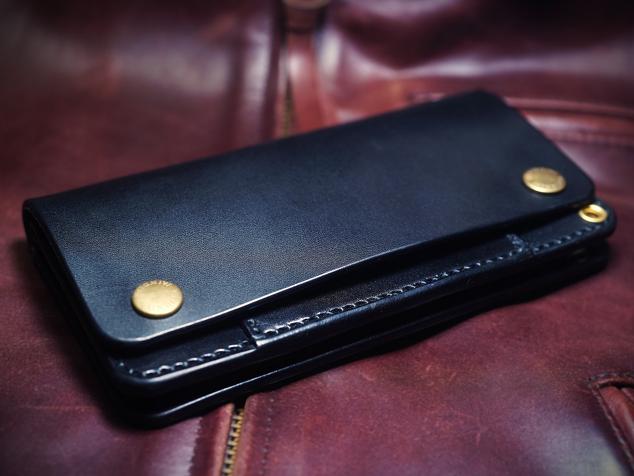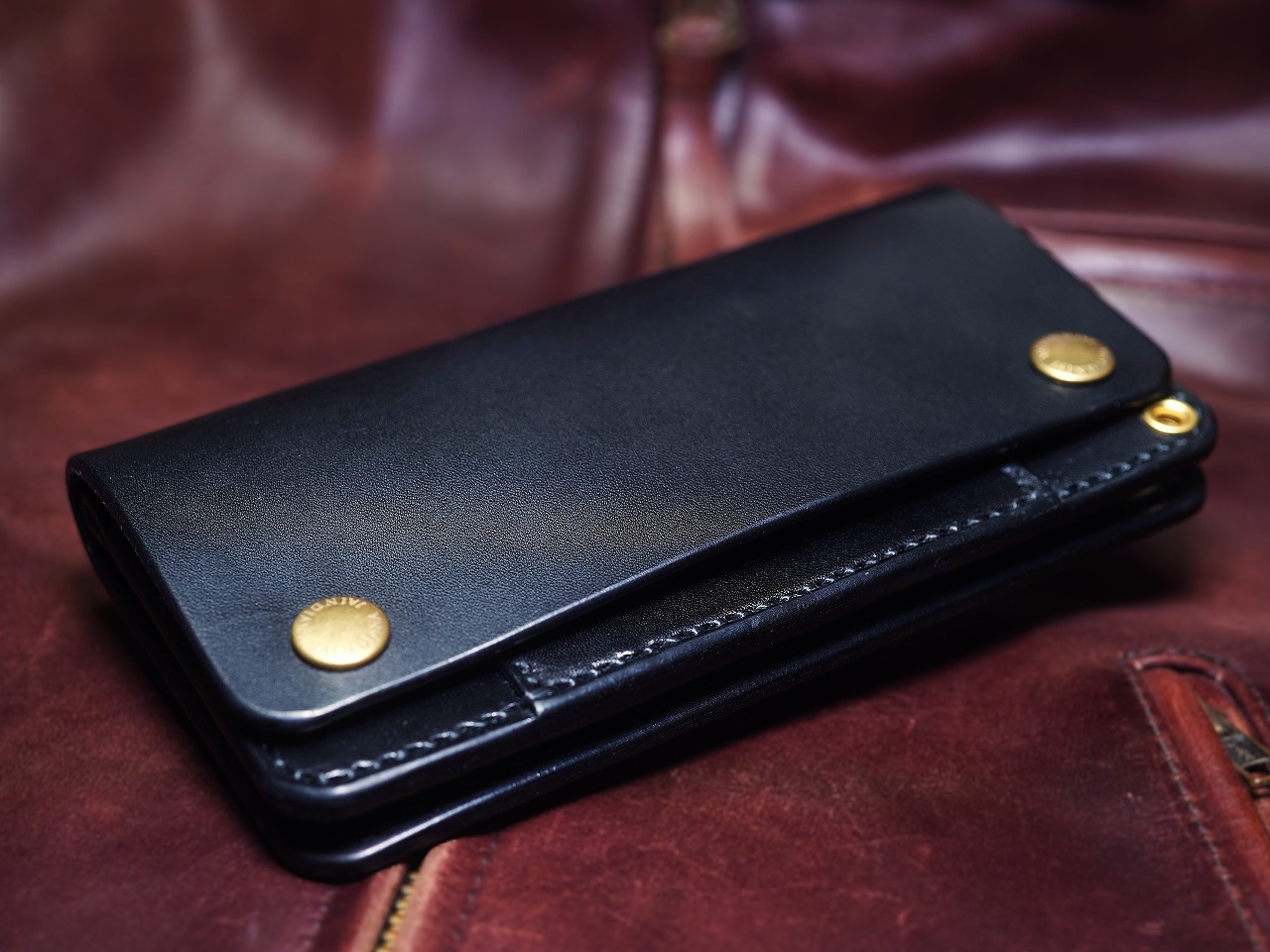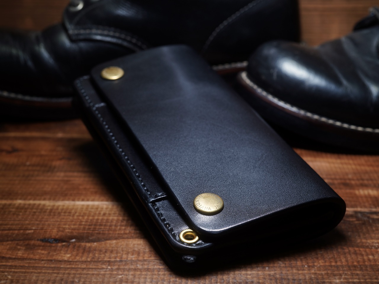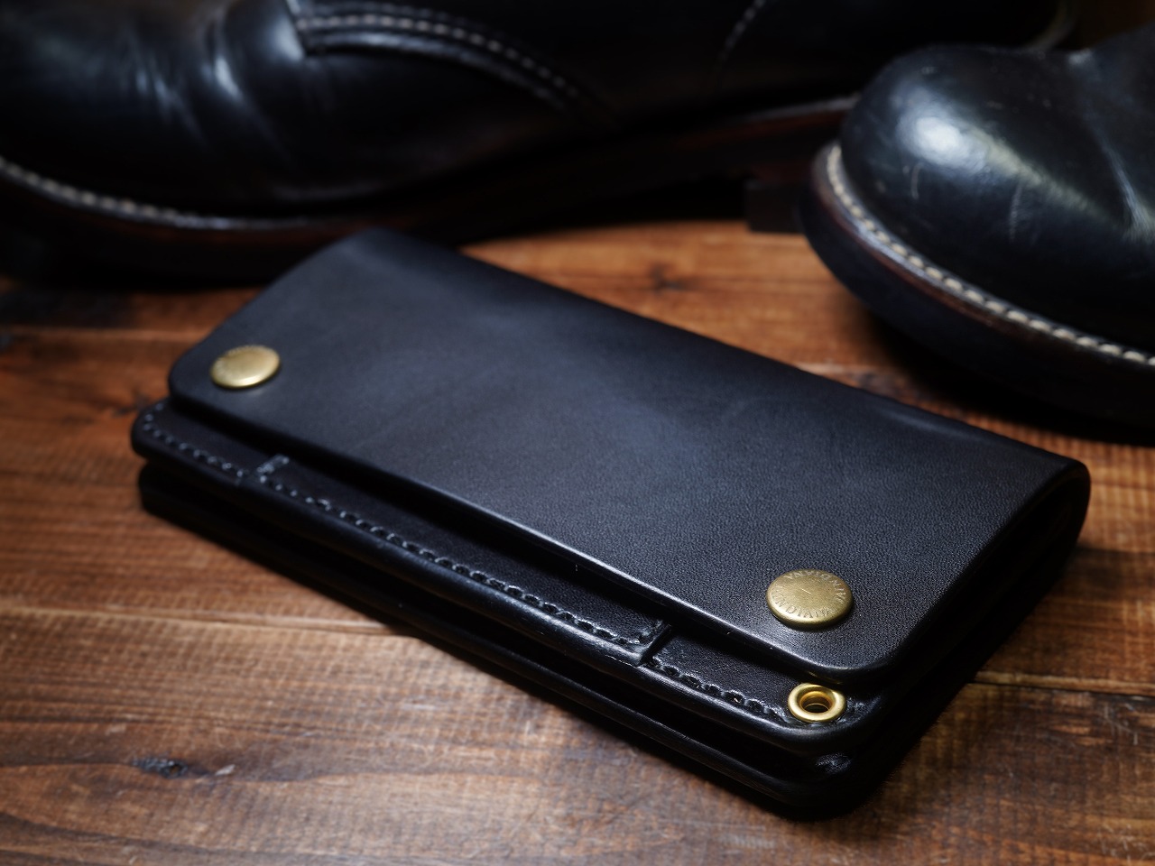 芯通しで丁寧に染め付けられた上質な栃木レザー。究極の色も言える黒。ブラックサドルレザーの不変の魅力が日常に確かさをもたらすサドルレザートラッカーウォレット。