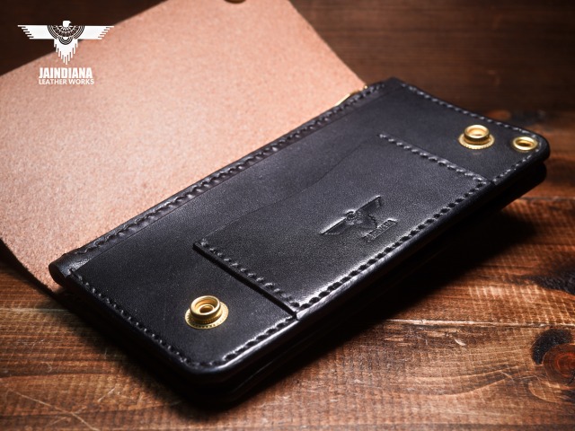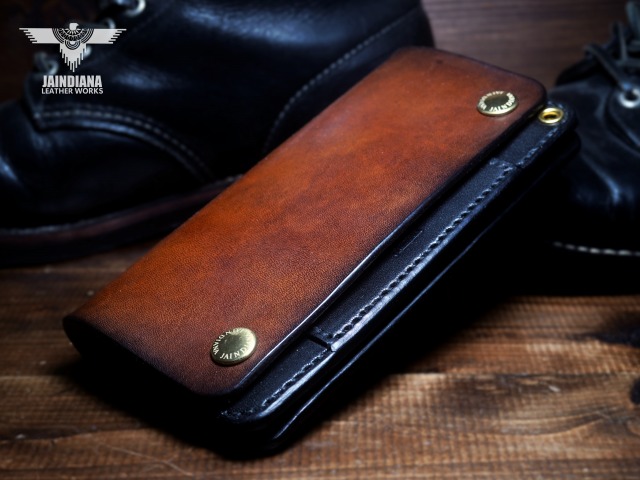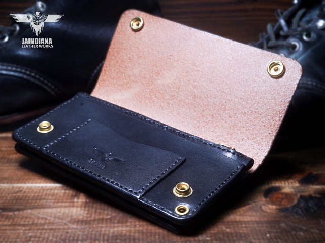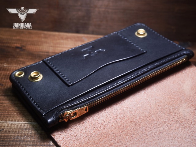 ウォレットロープを取り付けるための真鍮製楕円カンの取り付けが可能です。ご希望の場合はご注文