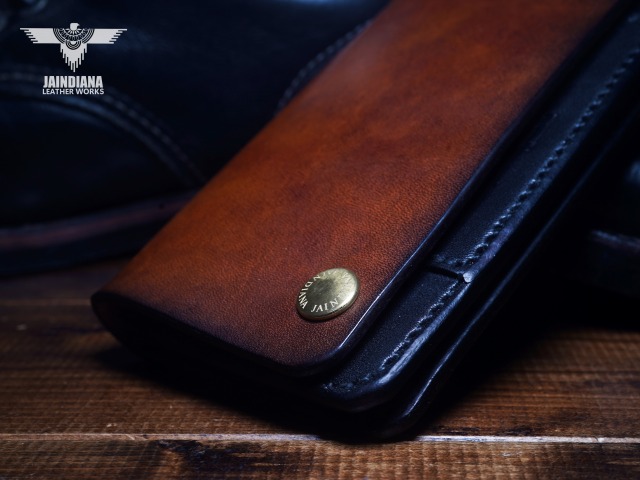 真鍮無垢製製ですので重厚感があり、ビンテージ感ある手染めのサドルレザーウォレットとの相性が抜群です。