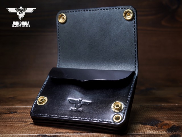 芯通しで丁寧に染め付けられた上質なコードバン。究極の色も言える黒。ブラックコードバンの不変の魅力が日常に豊かさと確かさをもたらすショートトラッカーウォレット。