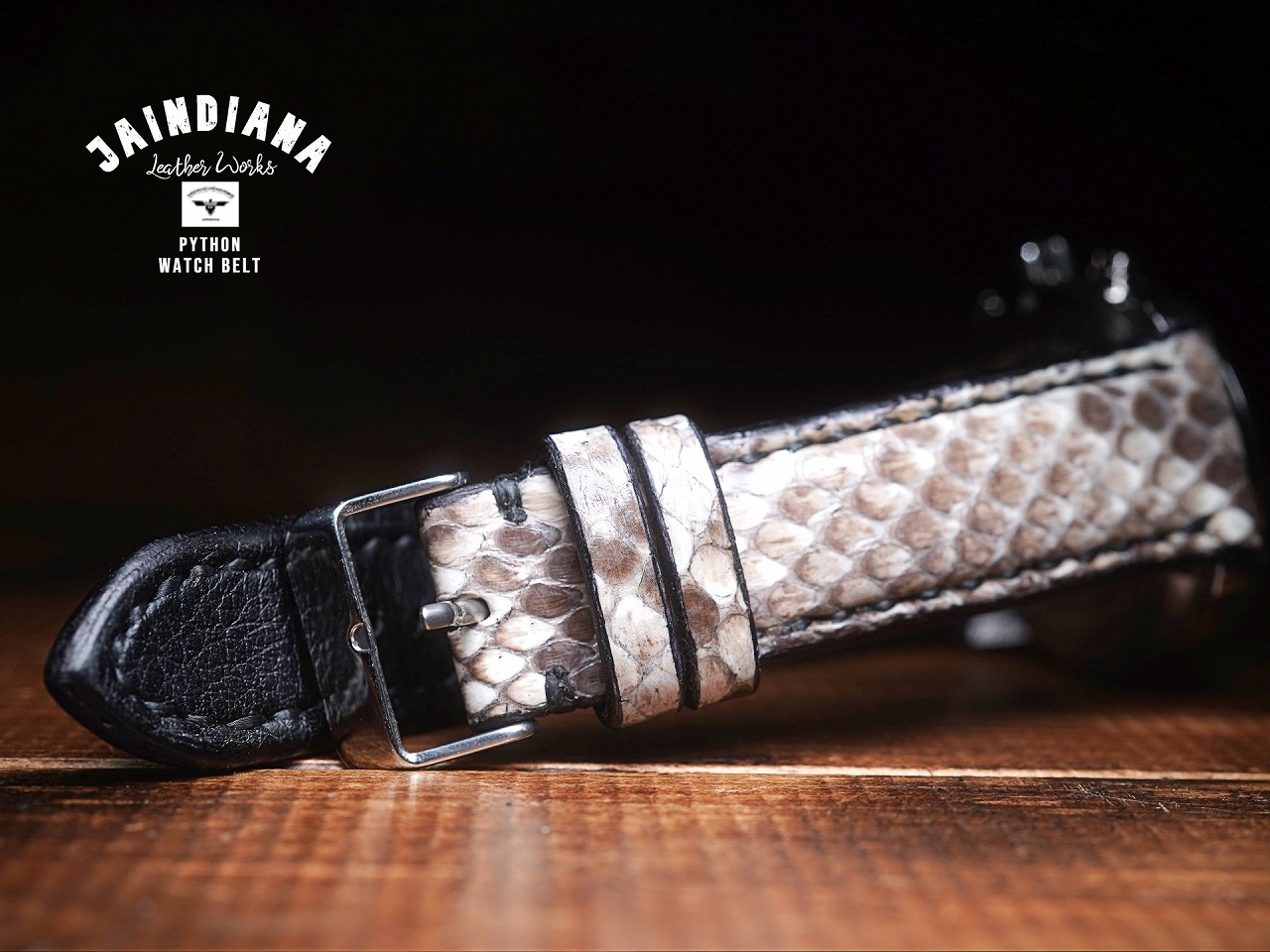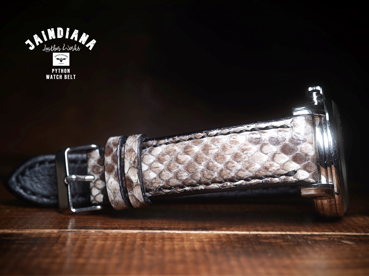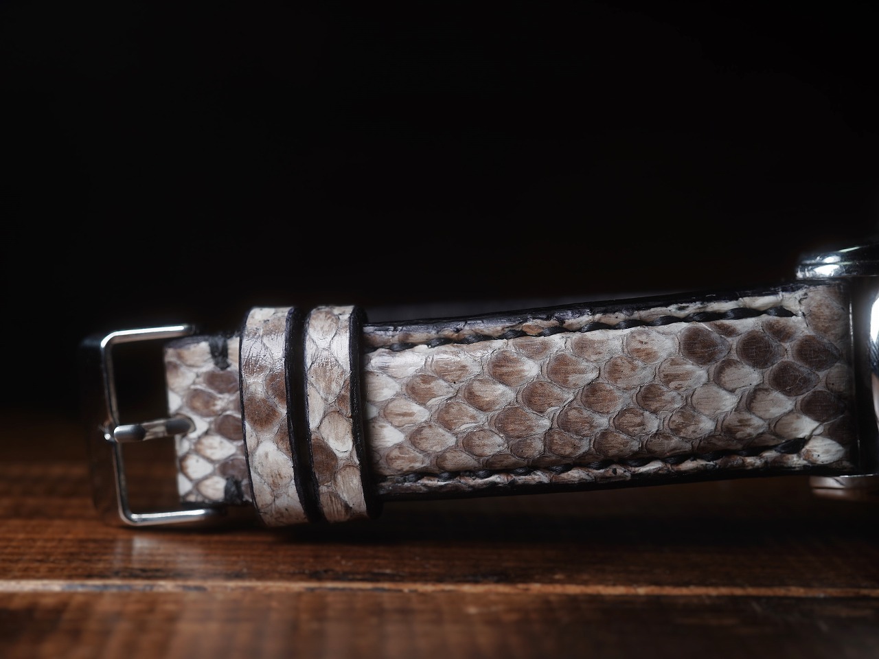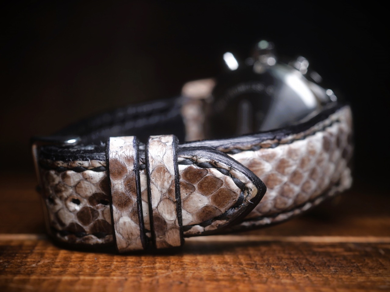 圧倒的な存在感を放つパイソンスキンウォッチベルト。